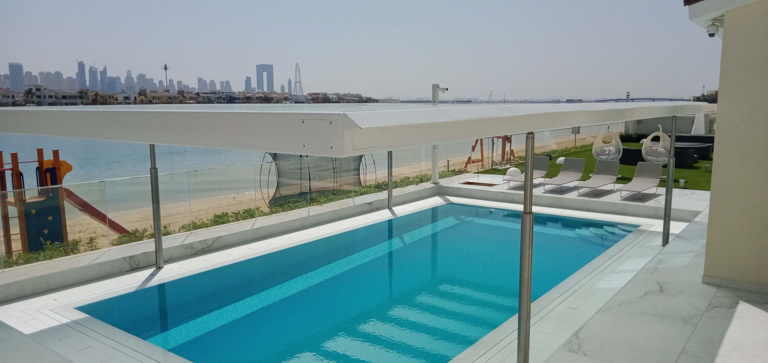 Unleash the magic of your outdoor oasis with Globetech’s dual innovations: the Movable Pool Floor and Automated Shade Roof Cover! Crafted by Italian engineering excellence and supported by our fully established UAE team for seamless installation, maintenance, and construction, these solutions transform your pool into a stunning patio or a shaded retreat.